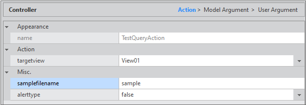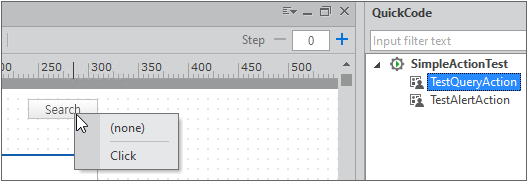 QuickCode 패널에서 Action 탭을 선택하고 TestQueryAction 항목을 선택합니다.