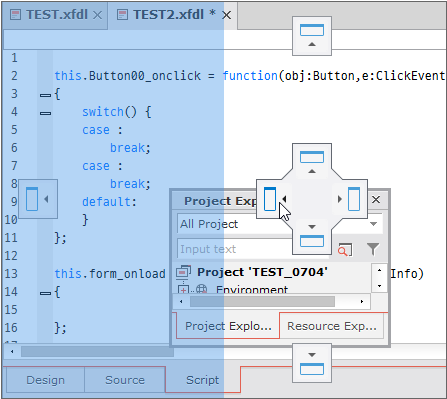 기능을 제공하는 창의 배치를 변경하거나 다른 창과 겹쳐서 탭으로 표시할 수 있습니다. 또는 넥사크로 스튜디오 영역을 벗어나 별도의 윈도우로 배치할 수도 있습니다.