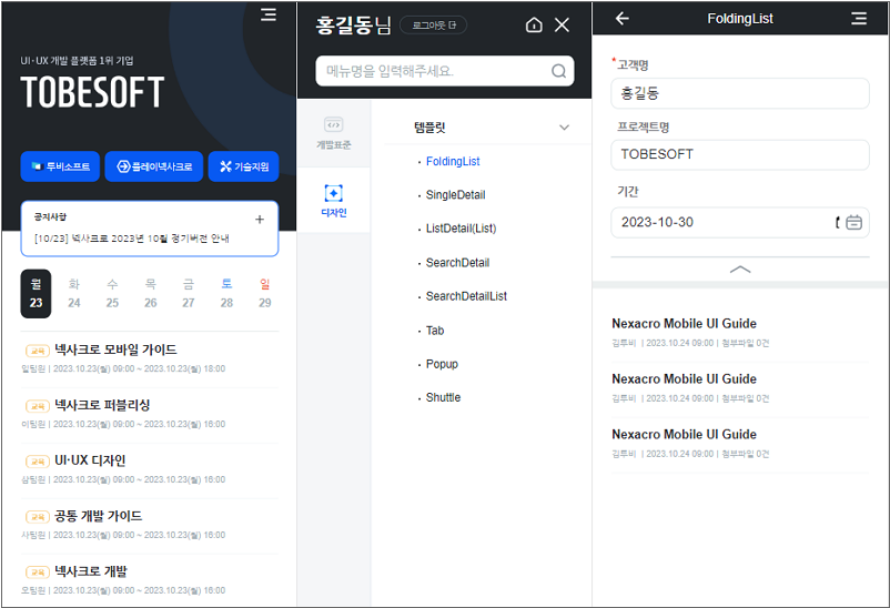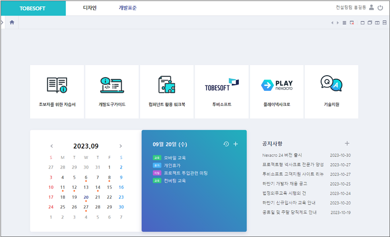 프로젝트 개발 시 활용할 수 있는 디자인 템플릿과 트랜잭션, 팝업, 메시지 처리 등의 공통 기능 스크립트를 제공합니다.