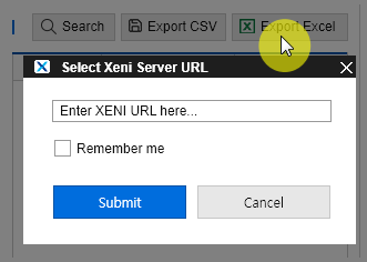 • Excel 파일 내보내기는 XENI를 사용하며 연결한 XENI 서버 URL을 입력해주어야 합니다.