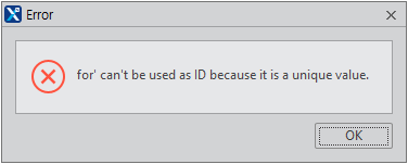 Property 이름을 JavaScript 예약어로 생성할 수 없습니다.