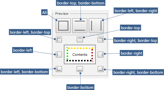 Preset 버튼은 다음과 같은 Border 속성값을 설정합니다.