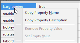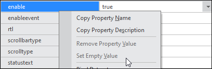 컴포넌트 속성 중 기본값을 가지거나 boolean 값처럼 확정된 속성값이 있는 경우에는 컨텍스트 메뉴에서 Remove Propeory Value, Set Empty Value 항목이 비활성화됩니다.