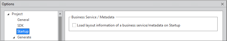 넥사크로 스튜디오 시작 시 Business service, metadata를 Load하여 Project Explorer에 항목을 표시할지 설정합니다