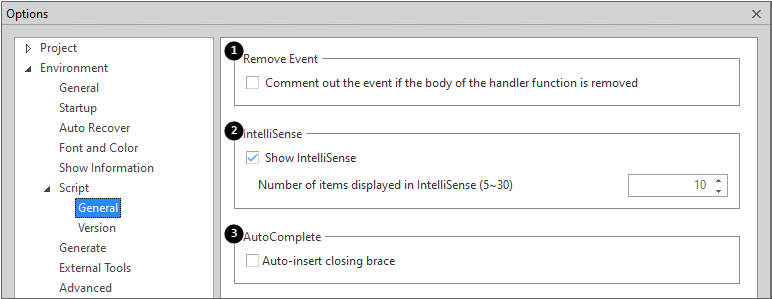 Source Control과 관련된 Option을 설정합니다. 해당 Option은 사용자 PC에 사용 가능한 Source Control이 설치된 경우에만 보입니다.
