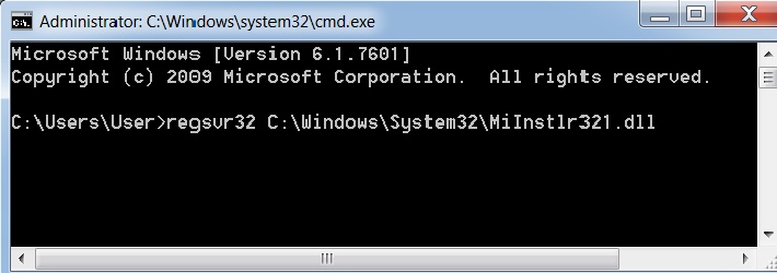 Register MiInstlr320.dll or MiInstlr321.dll file registry in C:\Windows\system32 folder (register all MiInstlr3xx.dll files); for 64bit PC, confirm in syswow64 folder Start > Run > regsvr32.exe Leave a space and drag the above file and confirm > “Successful”