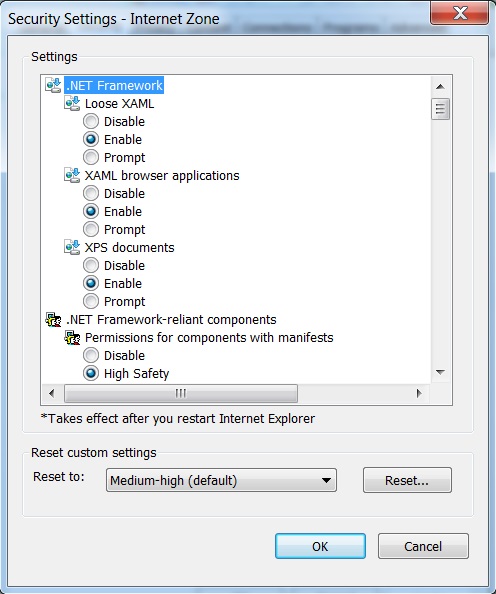 1. IE -> Internet Options -> Security -> Custom Level