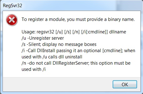 It occurs because Regsvr32.exe file was damaged or due to authority problem during installation