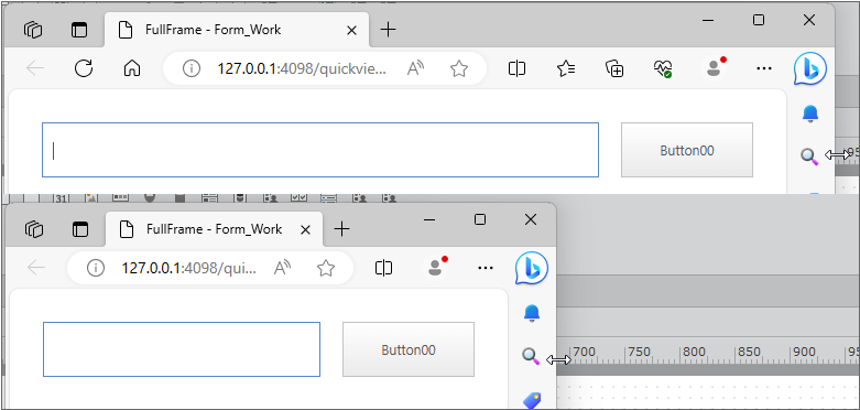 웹브라우저에 Edit 컴포넌트와 Button 컴포넌트가 표시되는지 확인하고 웹브라우저의 너비를 변경해봅니다.