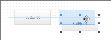 파란색 선이 첫 번째 Button 컴포넌트와 일치하는 지점에서 눌려있는 마우스 왼쪽 버튼을 놓습니다.