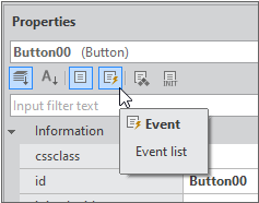 Button 컴포넌트를 선택하고 속성창에서 Event 아이콘을 클릭합니다.