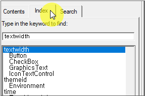 Index 탭에 원하는 항목명을 입력합니다. "textwidth"이라고 입력해봅니다.