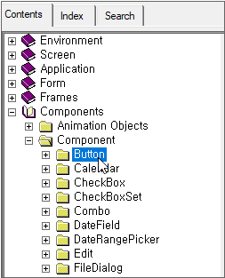 컴포넌트(오브젝트) 항목을 클릭하면 해당 속성, 메서드, 이벤트에 대한 설명이 오른쪽에 표시됩니다.