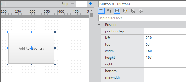 속성창에서 Button 컴포넌트 위치와 크기 변경하기