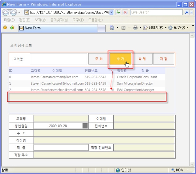 By clicking add button, add new data. Row is added at Grid, and data can be entered in details.