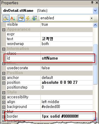 . Place Static at coordinates(0, 0) and set upt the border property values as “1px solid #808080ff”. Besides, place division(Div) next to it.