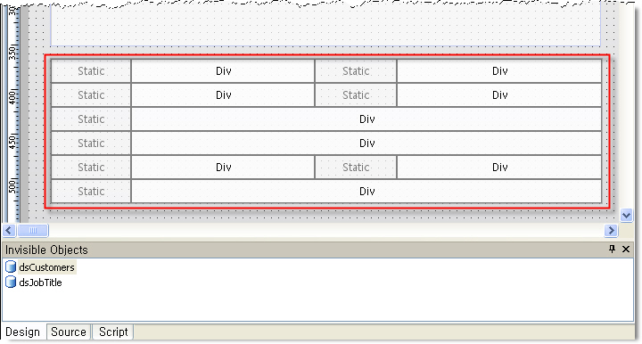 Create Static above Division(Div) by selectingfrom the component tool bar, and create Division(Div) next to the added Static by selecting