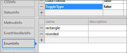 「rectangle」、「rounded」の2つのプロパティ値をEnumの形で使用するために、下図のようにEnumInfo項目を先に追加します。