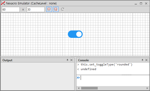 색상을 지정하는 toggleOnColor, toggleOffColor 2개 속성을 추가하고 스크립트 코드를 아래와 같이 수정합니다.