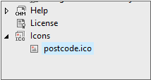 Project Explorer에서 선택한 ico 파일이 표시되는 것을 확인합니다.