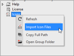 Project Explorer에서 icons 항목을 선택하고 컨텍스트 메뉴에서 [Import Icon Files] 항목을 선택합니다.