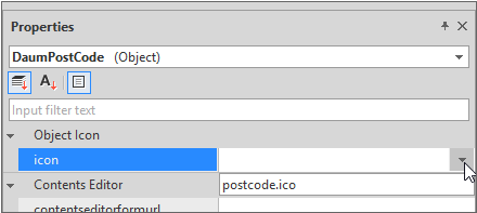 Project Explorer에서 모듈 오브젝트를 선택하면 속성창에서 icon을 설정할 수 있습니다. icon 목록에서 원하는 파일을 선택합니다.