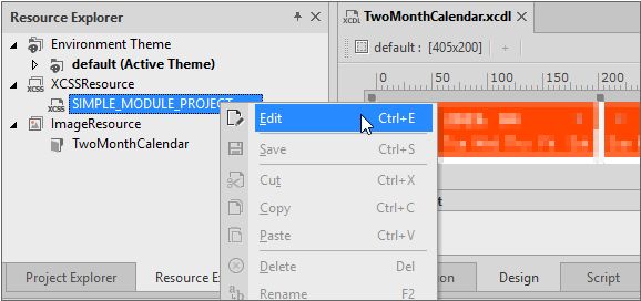 Select the xcss file in the Resource Explorer tab and click [Edit] item from the context menu to open the CSS editing window.