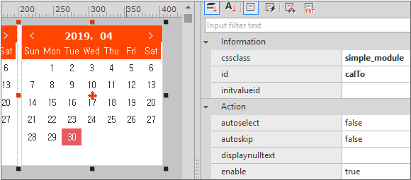 Specify the cssclass property value of 2 Calendar components to "simple_module". You can see that the style of the components has been changed.