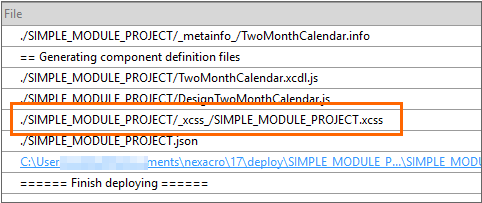 When generating a module project, the XCSS file is automatically generated with the project name. The generated file can be found in the Resource Explorer tab.