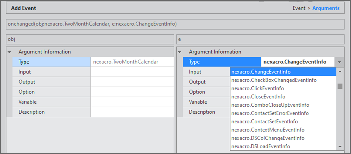 Click the [Next] button and specify the object where the event occurs and the EventInfo object. If the [Finish] button is clicked without specifying the corresponding item, nexacro.EventInfo object is applied as default.