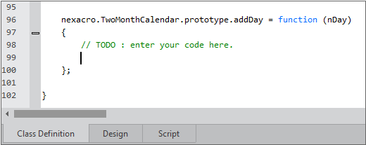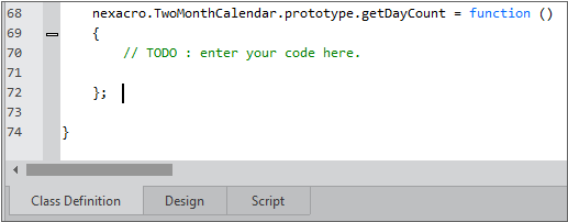 If you click the [Finish] button, a basic script is added as shown below and the Class Definition tab is activated.