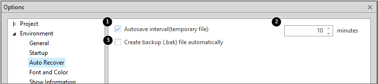 1 | Autosave interval (temporary file) | If checked, a temporary file will be created. |