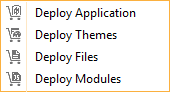 Deploy Application | 서버에 이관할 파일을 자바스크립트 파일로 변환합니다. • 애플리케이션, 테마, 파일, 모듈(라이브러리) 단위로 변환할 수 있습니다. • 필요에 따라 자바스크립트 파일을 압축(난독화)해서 변환할 수 있습니다. ('Compress JS Files' 항목 체크 / JDK 설치 필요) |