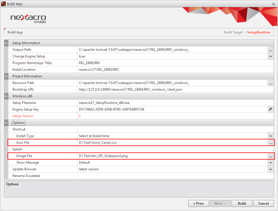 nexacrostudio에서 Runtime 엔진 빌드시 Shortcut Icon과 Splah image를 설정할 수 있는 기능을 추가 했습니다. (RP.80162)