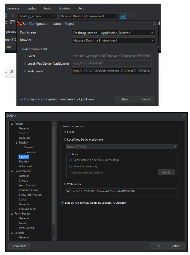 넥사크로스튜디오에서 서버 경로로 Nexacro Runtime Environment(NRE)을 QuickView/Launch 할 수 있는 기능을 추가했습니다. (RP.83623)