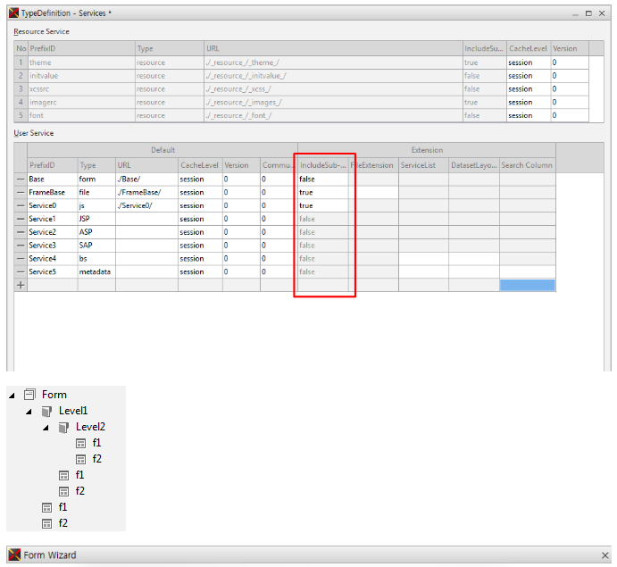 • TypeDefinition 서비스 관리창에 "IncludeSub-directiory" 옵션을 추가했습니다. >> type이 "Form/File/js"인 경우만 "IncludeSub-directiory" 옵션값을 true 또는 false로 변경할 수 있습니다. >> type이 "resource"인 경우 "theme/imagerc"만 "IncludeSub-directiory" 옵션값이 true로 자동 설정됩니다. >> "Form/File/js/resource"를 제외한 나머지 type의 경우 "IncludeSub-directiory" 옵션값은 false로 자동 설정되며, 변경할 수 없습니다. |