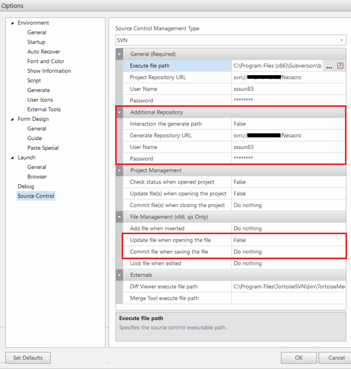 • 일부파일(xfdl,xjs) 저장 시 SVN에 자동으로 Commit 할 수 있는 기능을 추가했습니다. • 일부파일(xfdl,xjs) 오픈 시 SVN에서 자동으로 Update 할 수 있는 기능을 추가했습니다. • SVN Repository 등록 시 Source 와 Generate 경로를 관리할 수 있는 기능을 추가했습니다. |