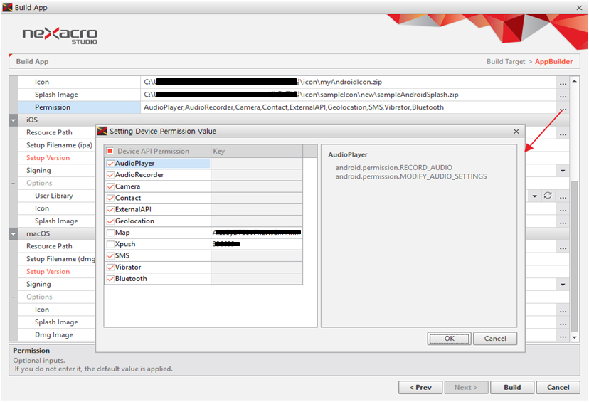 • "iOS/Android/macOS" 어플리케이션 빌드를 위한 AppBuilder 서버의 일부 Admin 기능을 nexacrostudio에 추가했습니다. • nexacrostudio에 추가된 AppBuilder 서버의 Admin 기능은 아래와 같습니다. >> 프로젝트 생성할 수 있는 기능을 추가했습니다. >> Engine Library 등록 및 Update 할 수 있는 기능을 추가했습니다. >> "어플리케이션 Signing 선택 / User Library 선택 / Icon 및 Image 적용 / DeviceAPI Permission 적용"을 할 수 있는 Build 옵션을 추가했습니다. |