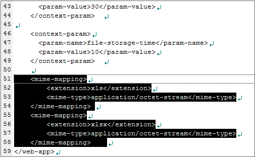 If the file dialog box does not open or the file contents are displayed as broken on the browser after Export is completed, then add mime-mapping to web.xml and restart the WAS.