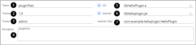 7 | Android Class | Android User Library 파일에서 사용하는 Class를 지정합니다. (패키지명 포함) |
